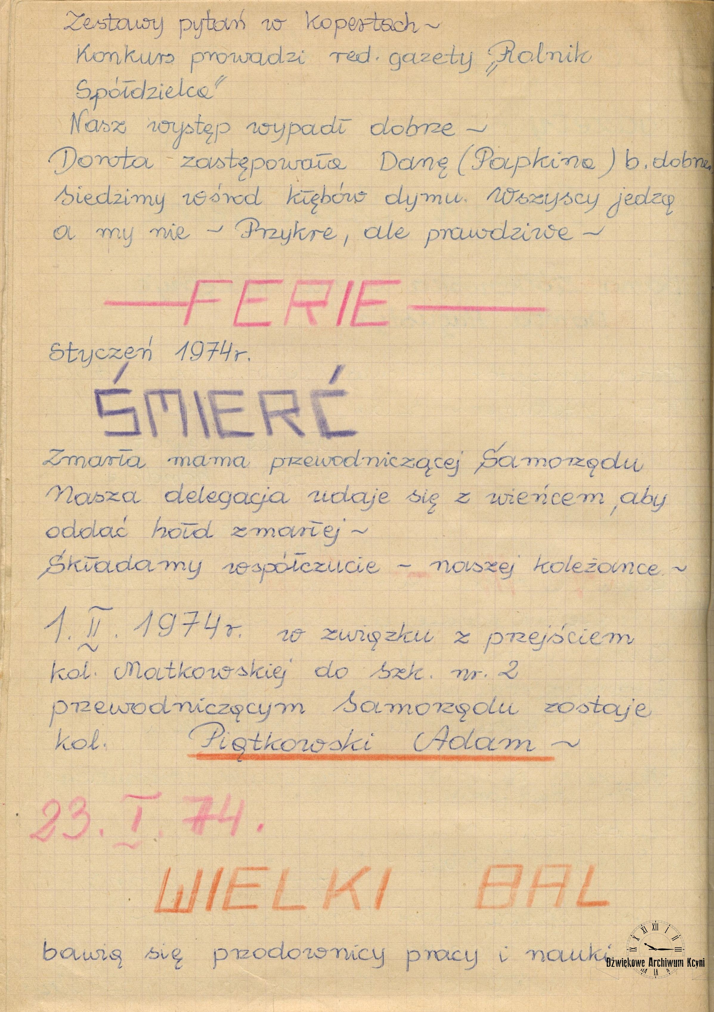 Wycinek prasowy, kronika kółka recytatorskiego - z archiwum Adama Pezackiego