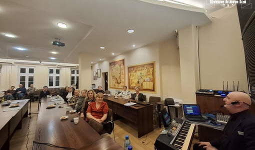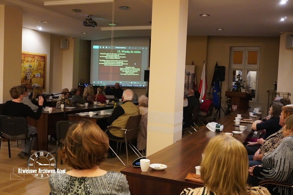Zaczęliśmy jednak od prezentacji podsumowującej rok, którą przygotowałam na tą okazję. Przekazałam w niej informacje o każdej Ciekawości świata, która się odbyła w kończącym się roku, o Spacerach z historią. Za pomocą zdjęć i filmów wróciliśmy wspomnieniami do tych wydarzeń. W sumie odbyło się aż 17 spotkań w tegorocznej edycji. Na naszym kanale Facebook i Youtube zamieściłam podsumowanie w formie filmowej, tam także znajdziecie rolkę na temat tego, jak wyglądał Wieczór z przebojami. W cyklu Ciekawość świata były miesiące, że spotykaliśmy się dwukrotnie. Na monotonię w tym roku naprawdę nie mogliśmy narzekać. Warsztaty tworzenia ozdób, spotkania autorskie, wycieczka do Muzeum Kanału Bydgoskiego, pokaz retro mody, wykłady... różnorodność form i tematów.