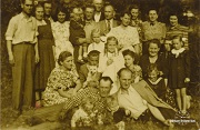 Stoją od lewej: rodzice chrzestni Lili, Michał Szpotański, Cecylia i Józef Szpotańscy z córką Zuzanną na rękach, Antoni Szpotański, Franciszek Szpotański, Wanda Szpotańska (żona Kazimierza Szpotańskiego), Zofia Szpotańska, żona Michała Szpotańskiego, Stanisława Kowalska z d. Szpotańska, Wanda Lalasz (córka Katarzyny Szpotańskiej). Centralnie: Lila Szpotańska, obok córka rodziców chrzestnych Lili.