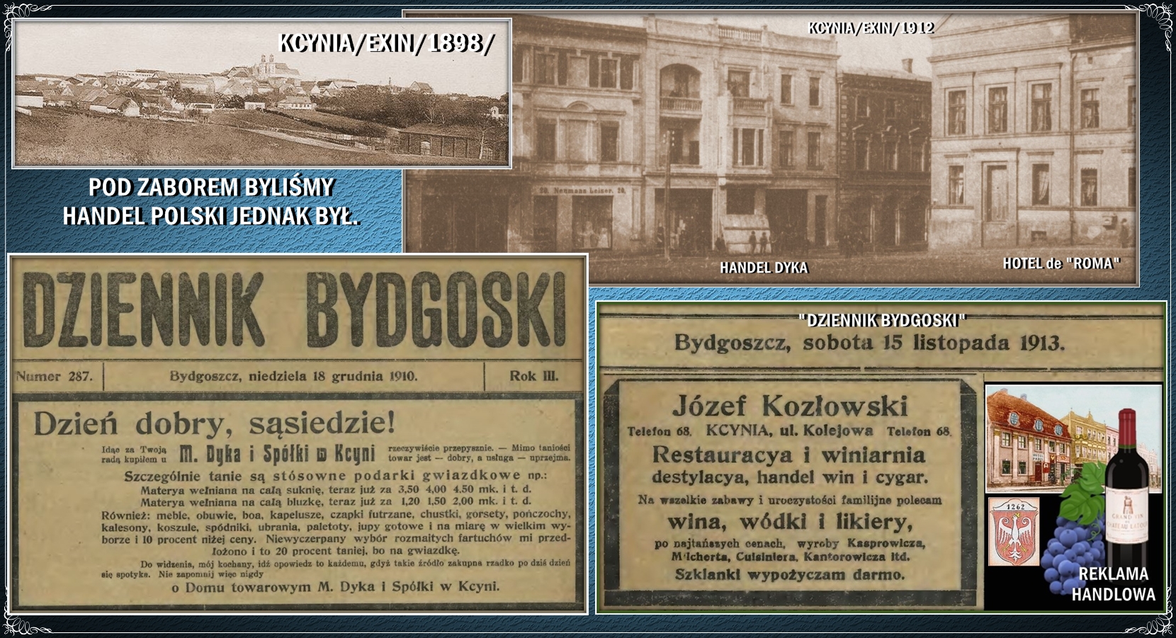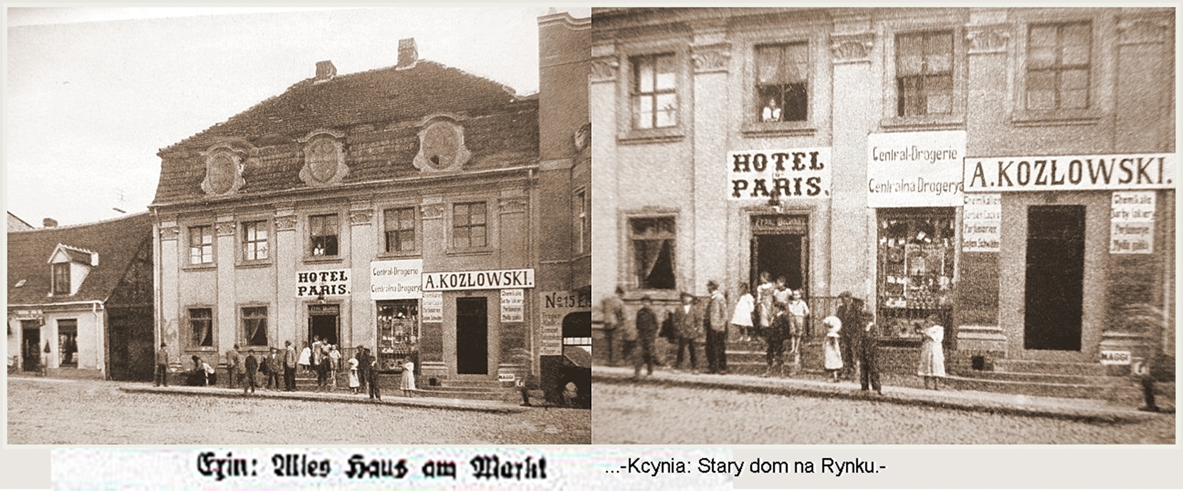 Na nadesłanej przez pana Romana Tadycha fotografii (poniżej) widzą Państwo szyld A. Kozłowskiego. Reklama z 1909 r. precyzuje, że towary kolonialne prowadził N. Synoradzki, natomiast obok nazwiska Synoradzkiego znajdziemy dopisek: właśc. A. Kozłowski, Kcynia.