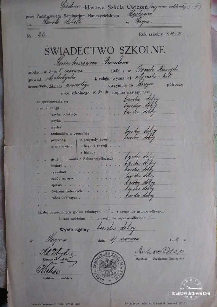 Poniżej świadectwo szkolne Stanisławy Świerkosz - z archiwum Stanisława Pilarskiego.