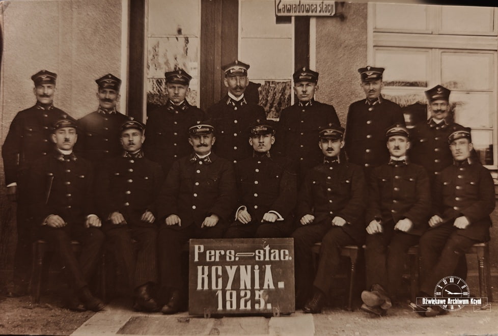 Personel stacji kolejowej w Kcyni. 1925 r. Z archiwum Angeliki Kolińskiej